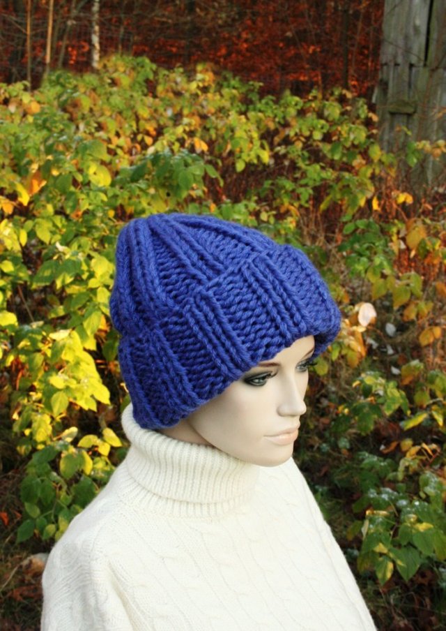 Ręcznie wykonana czapka w kolorze chabrowym. Mieszanka z wełną.