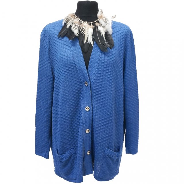 Kardigan w absolutnie przepięknym niebieskim kolorze. Materiał z fakturą, przepiękne srebrne guziki.