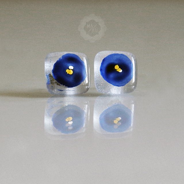 Szklane kolczyki- sztyfty wykonane ze szkła metodą fusingu z graficznym, ręcznie malowanym wzorem.