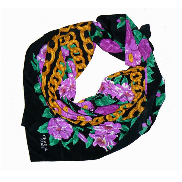 Duża chusta z nadrukiem Chanel Paris. Nie mam pojęcia czy jest oryginalna, nie ma żadnych dodatkowych metek. Mimo wszystko jest na pewno godna uwagi.