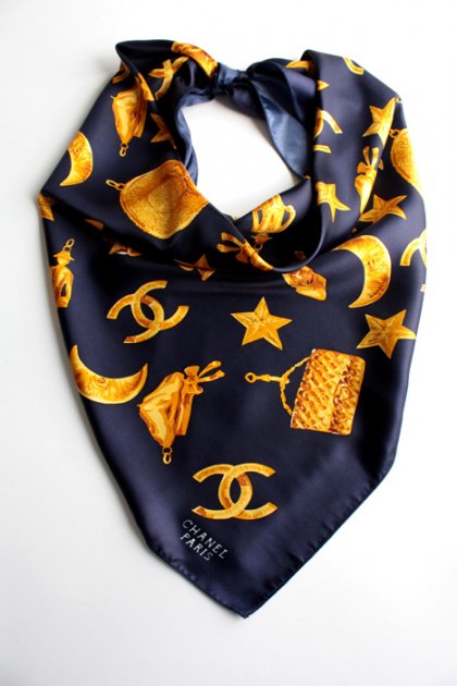Granatowa chusta w piękne, przestrzenne wzory od CHANEL.