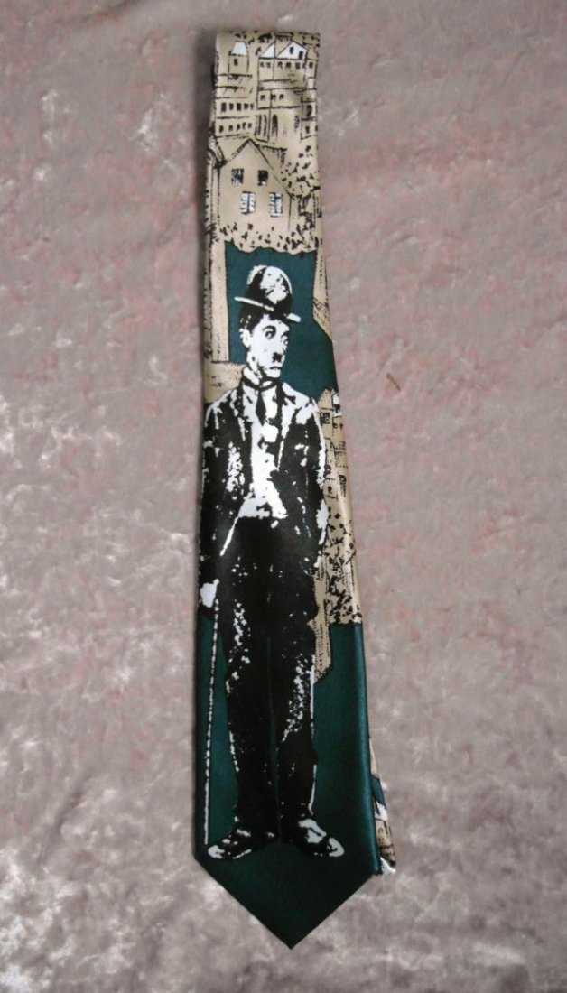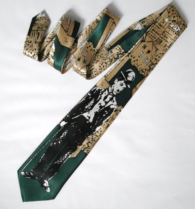 oryginalny,tematyczny krawat z wizerunkiem Charlie'ego Chaplin'a.