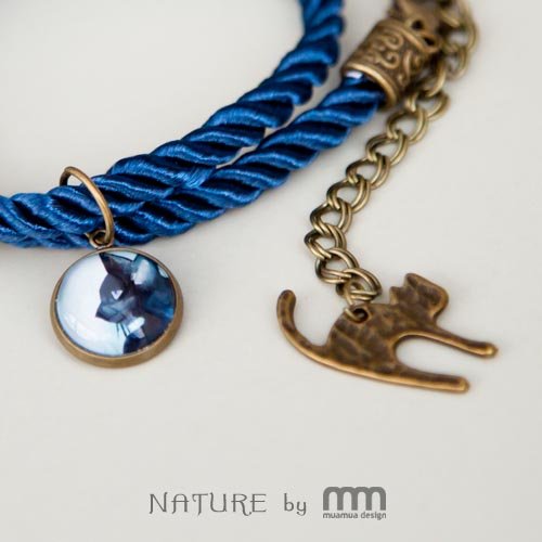 Bransoletka Chat Noir, z możliwością noszenia jako naszyjnik, to bardzo romantyczne, nostalgiczne i kobiece malutkie dzieło sztuki. Obrazek pod szkiełkiem to autorską fotografią. Bransoletka ze sznurka prezentuje się elegancko, a zawieszka oraz medalion dopełniają romantyczną stylistykę .