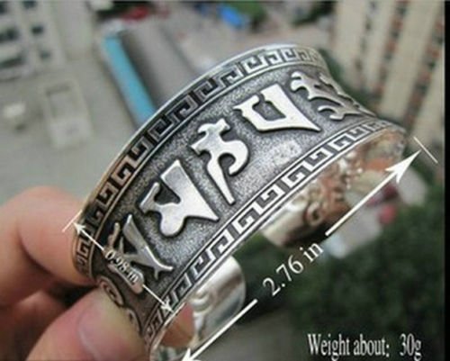 Sztywna bransoletka typu bangla, wykonana z tybetańskiego srebra. Grawerowana w chińskie znaki.