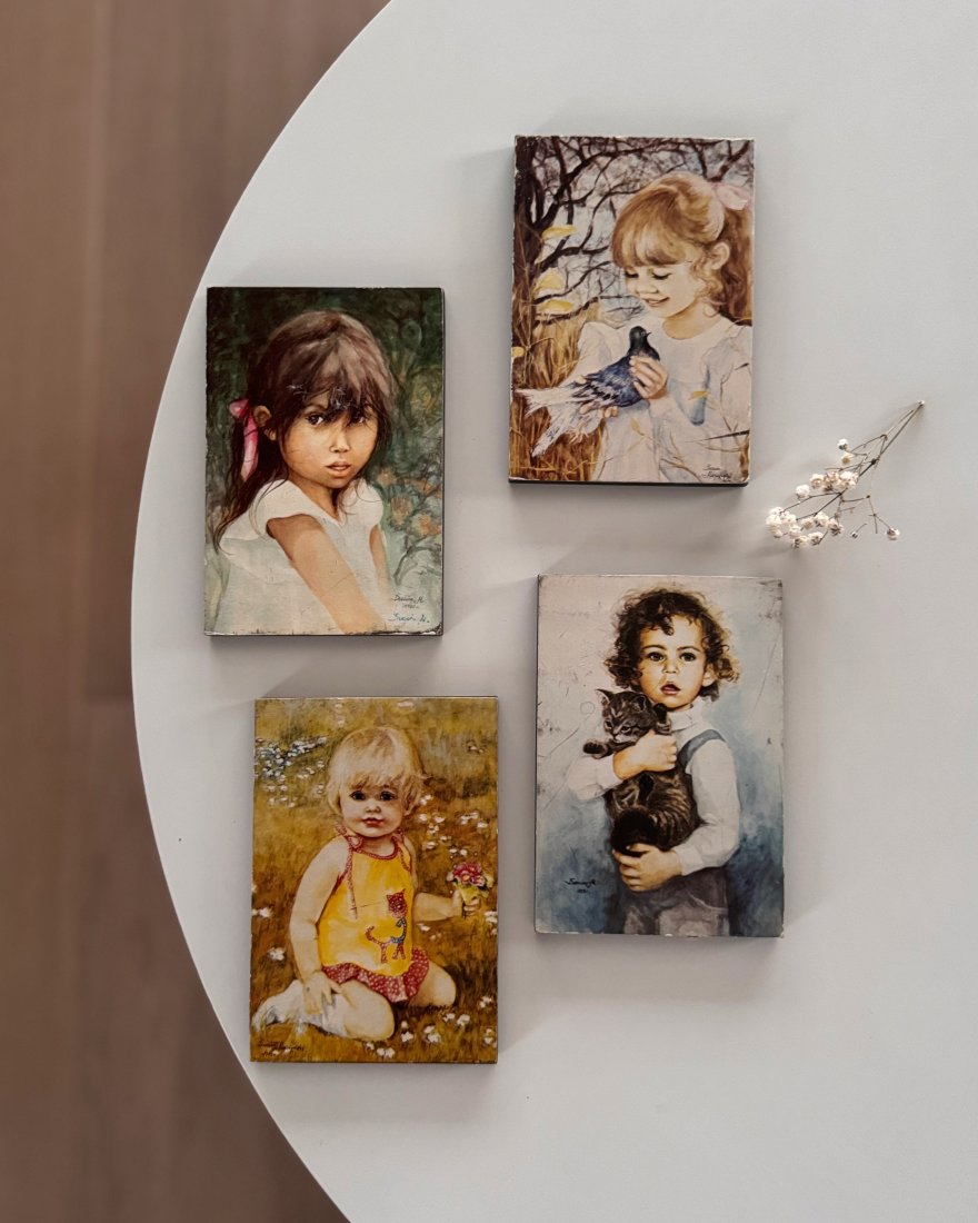 Obrazek na deseczce, reprodukcja z malarstwem dziecka Danuty Muszyńskiej-Zamorskiej.