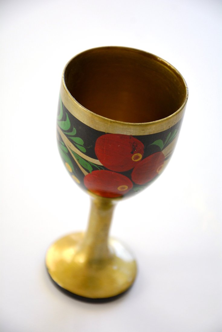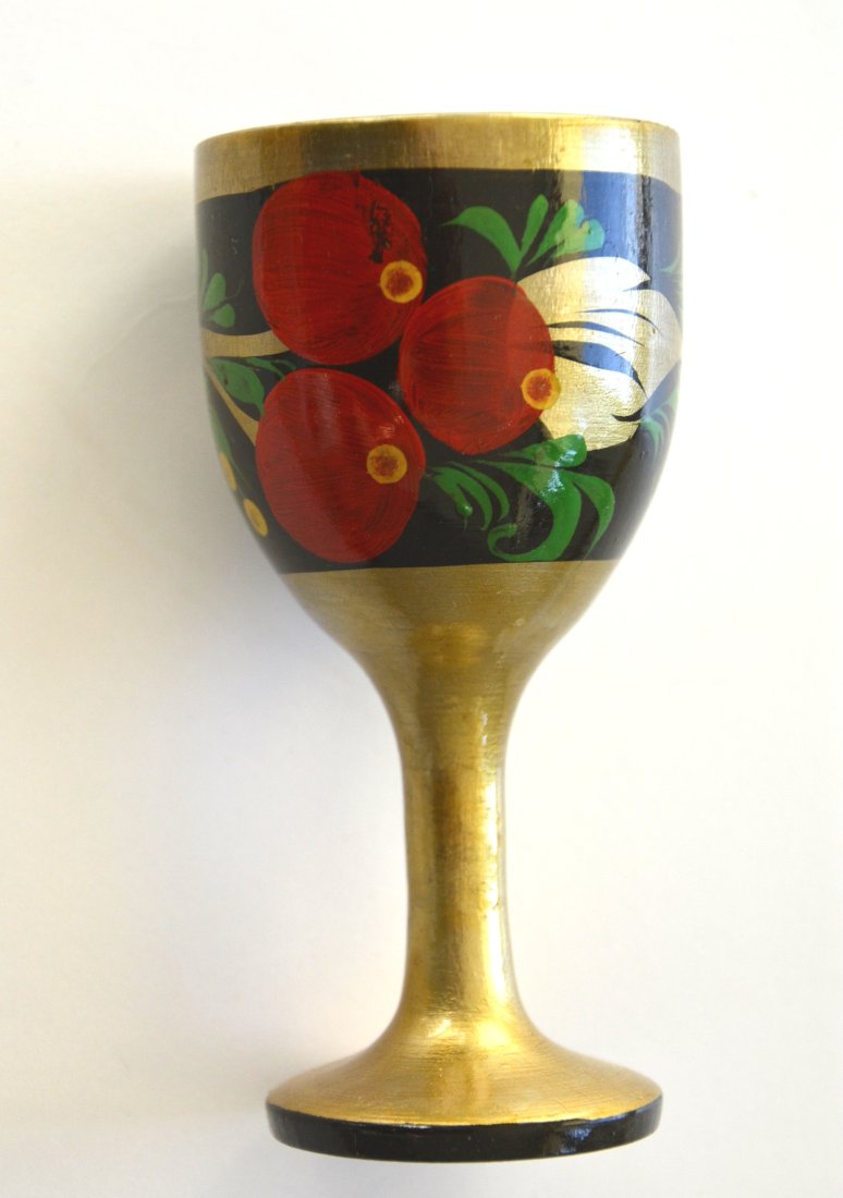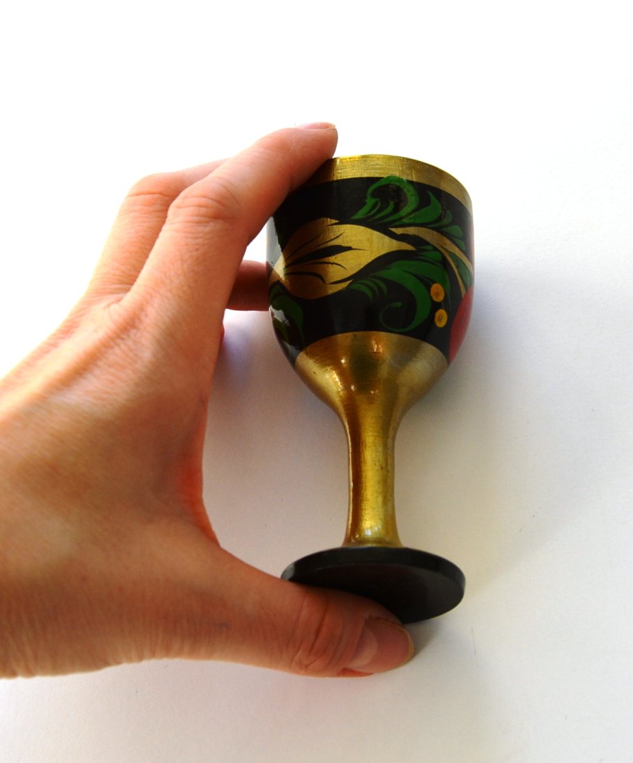 Chochłoma drewniany kieliszek ręcznie malowany, pochodzenie Rosja, stan idealny.