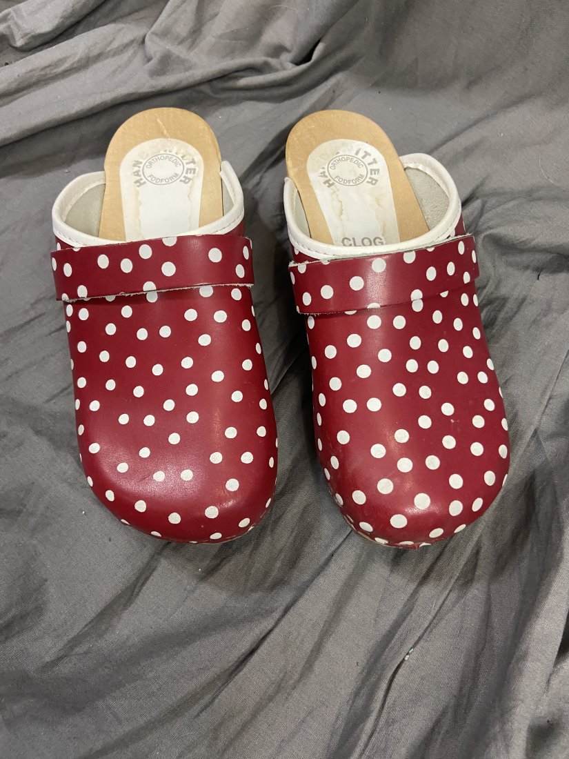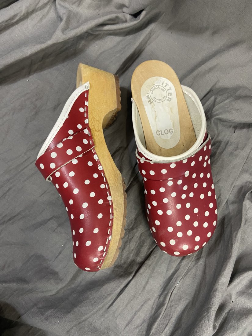 Chodaki drewniane z Ortopedic Fodform. Skórzana góra, podbicie gumowe.