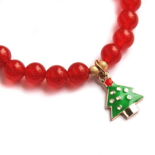 nie masz pomysłu na prezent? mam go ja! ;-) ... tutaj: śliczna, niezwykle urocza świąteczna bransoletka na solidnej lince elastycznej, wykonana z soczystego JADEITU (8mm) w kolorze czerwonej porzeczki, 2 kuleczek "gwiezdnego pyłu" (4mm) oraz cudnej, emaliowanej zawieszki (CHOINKA) - zawieszka jednostronna... . .. JADEIT - Pomocny jest w schorzeniach nerek i pęcherza .Pomaga przy bólach kręgosłupa. Odpręża, daje spokojny sen, pomocny jest w medytacji . Wzmacnia koncentrację.. .. do kompletu polecam bransoletkę z Rudolfem ;-) ... obw. wewnętrzny bransoletki: 16cm. ...UWAGA! cena dot. wyłącznie 1 bransoletki ... MOJA BIŻU ZAWSZE PODRÓŻUJE W OZDOBNYM OPAKOWANIU HANDMADE ;-)
