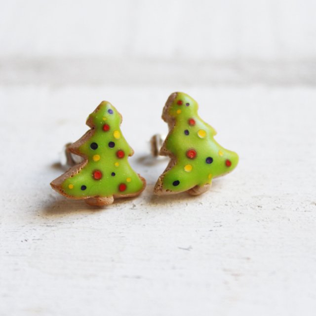 Piękne, małe kolczyki choinki wykonane z masy termoutwardzalnej. Koczyki mają 1,6cm wysokości i około 1cm szerokości. Sztyfty i baranki są metalowe. Kolczyki pięknie prezentują się na uszach. Wysyłam ozdobnie zapakowane
