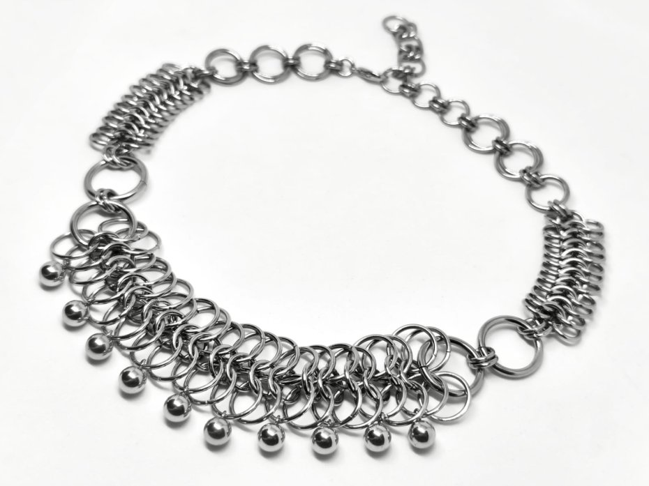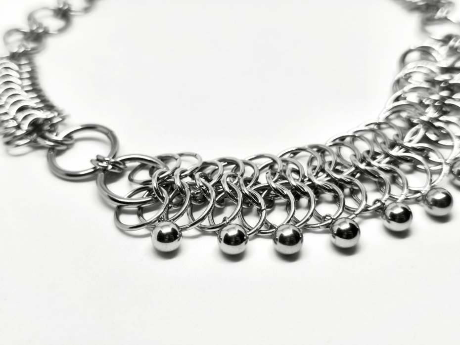 Ręcznie robiony choker chainmaille z dzwoniącymi stalowymi koralikami – 100% stal chirurgiczna – długość na zamówienie!
