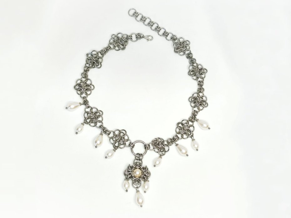 chainmaille, dark fairycore, gothic, stal chirurgiczna, witchy, dark romance, vampire, whimsigoth, naszyjnik dark academia, choker custom, wodoodporny, hipoalergiczny, biżuteria kolczugowa, biżuteria mroczna, biżuteria alt, biżuteria gothic, biżuteria perłowa, biżuteria dark fairycore