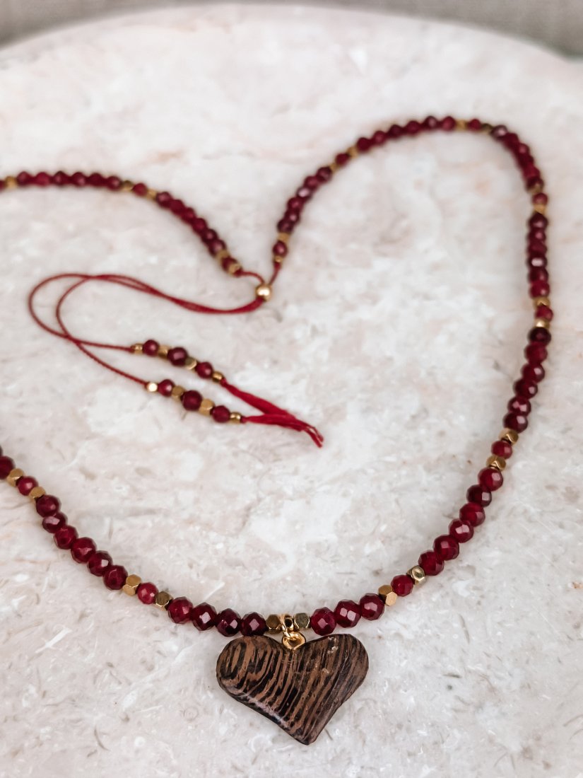 Regulowany naszyjnik Wooden Heart w całości wykonany jest ręcznie z kamieni naturalnych - chalcedonu.