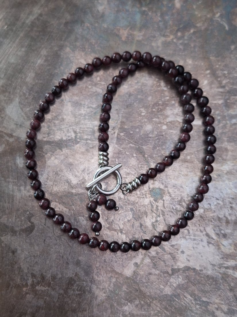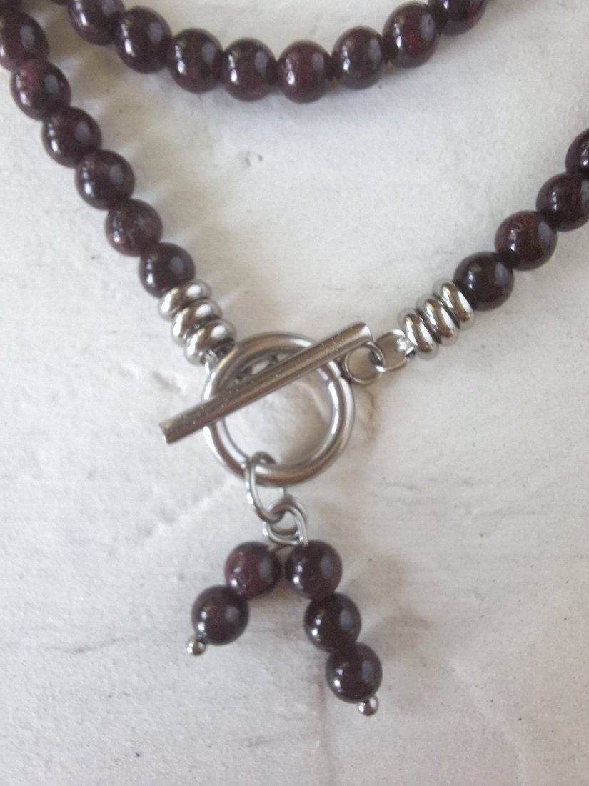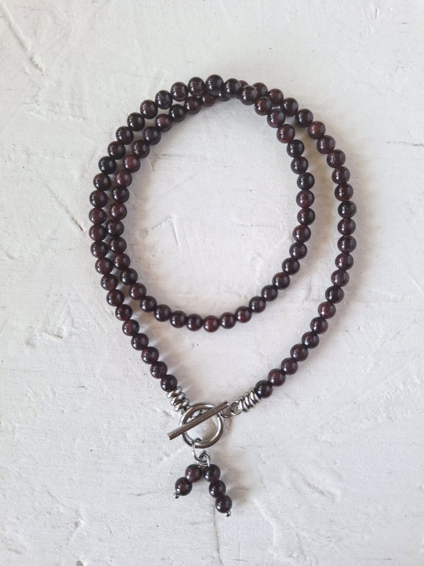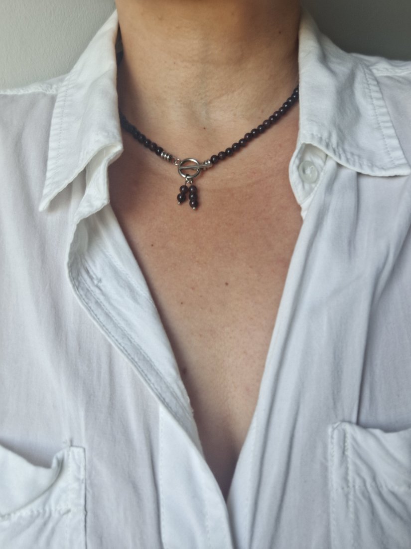 Choker z granatów 4 mm, zapięcie toggle z zawieszką.