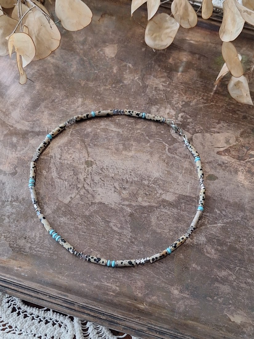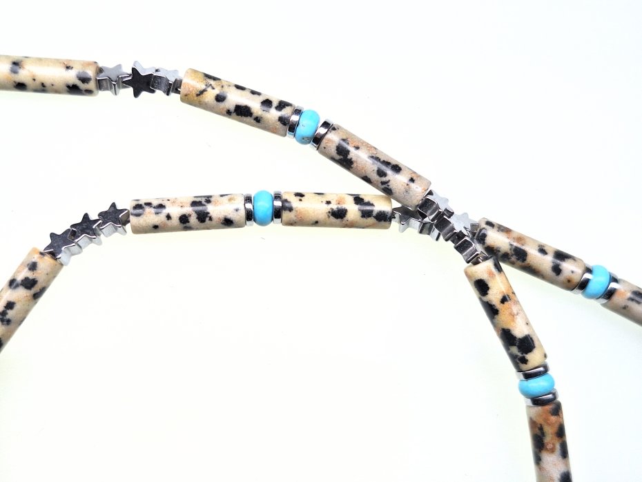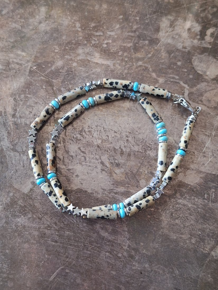 Tagi: #choker, #gwiazdki, #howlit turkusowy, #jaspis dalmatyński