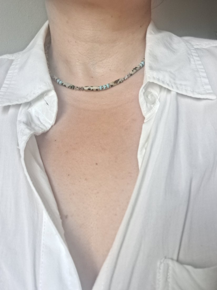 4.  > Choker z jaspisu dalmatyńskiego z howlitem i gwiazdkami (nr 7098493)