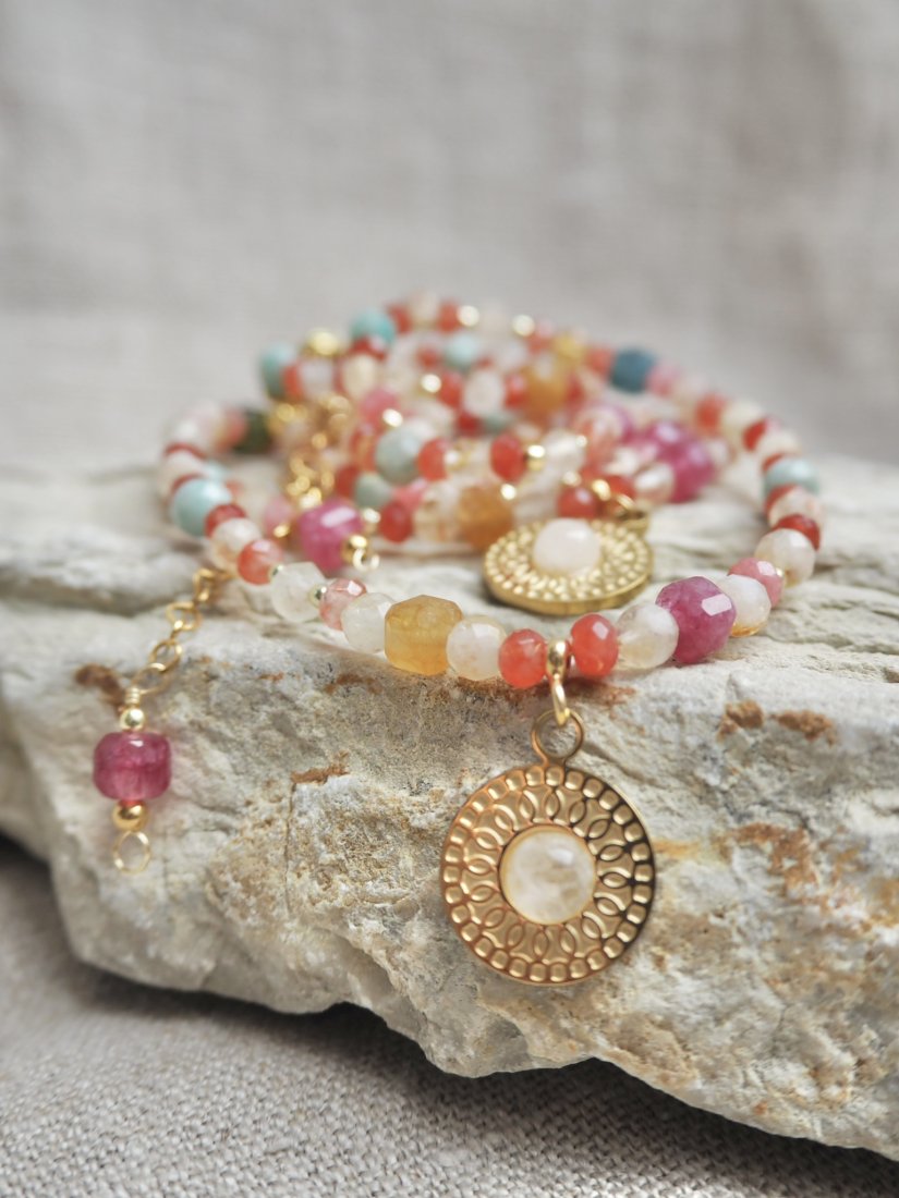 Ten naszyjnik możesz nosić zarówno na co dzień, jak i do eleganckich stylizacji. Dzięki mnogości barw będzie pięknym talizmanem na każdą okazję.