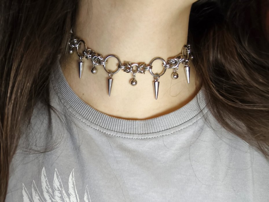 Choker z kolcami, choker chainmaille, choker masywny, choker punk, choker gothic, choker industrial, choker stal chirurgiczna, choker z koralikami, choker wodoodporny, choker hipoalergiczny, choker alternatywny, choker custom, naszyjnik z kolcami, naszyjnik metalowy, naszyjnik na koncert, naszyjnik festiwalowy, naszyjnik punk, naszyjnik goth, naszyjnik heavy, biżuteria kolczugowa, biżuteria mroczna, biżuteria alt, biżuteria industrial