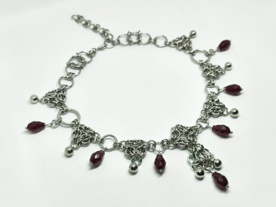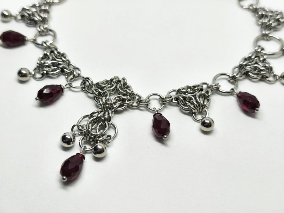 chainmaille, z łezkami, wiśniowy, bordowy, gothic, witchy, dark romance, vampire, punk, stal chirurgiczna, ciężki, masywny, custom, naszyjnik z łezkami, z koralikami, na koncert, festiwalowy, dark academia, whimsigoth, biżuteria kolczugowa, biżuteria mroczna, biżuteria alt, biżuteria gothic, biżuteria witchy, biżuteria z cyrkoniami, handmade, prezent dla niej, prezent na walentynki