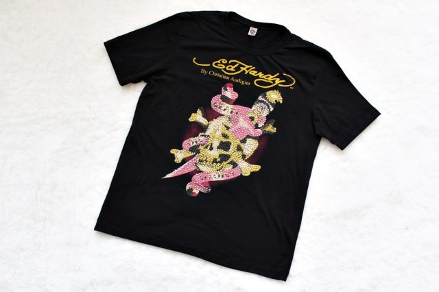 Fantastyczny czarny t-shirt z super motywem czaszki z wzorem z koralików.