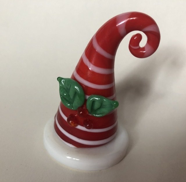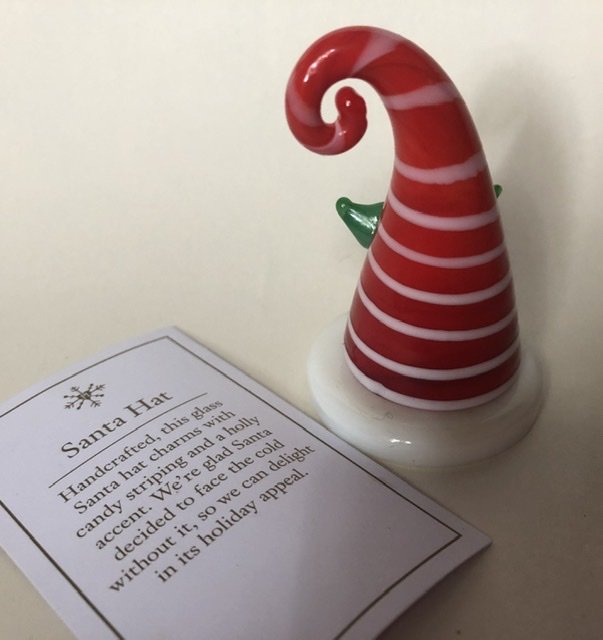 Santa Hat - szklane cudeńko ozdoba ręcznie zdobiona . Szkło w oryginalnym opakowaniu . Urocza , zabawna , minimalistyczna . Podstawa prawie 4 wysokość 6 opakowanie nie całe 6,5 x 8,5 x5 Stan zachowania - bardzo dobry , nowe . Opakowanie nosi drobne ślady czasu .