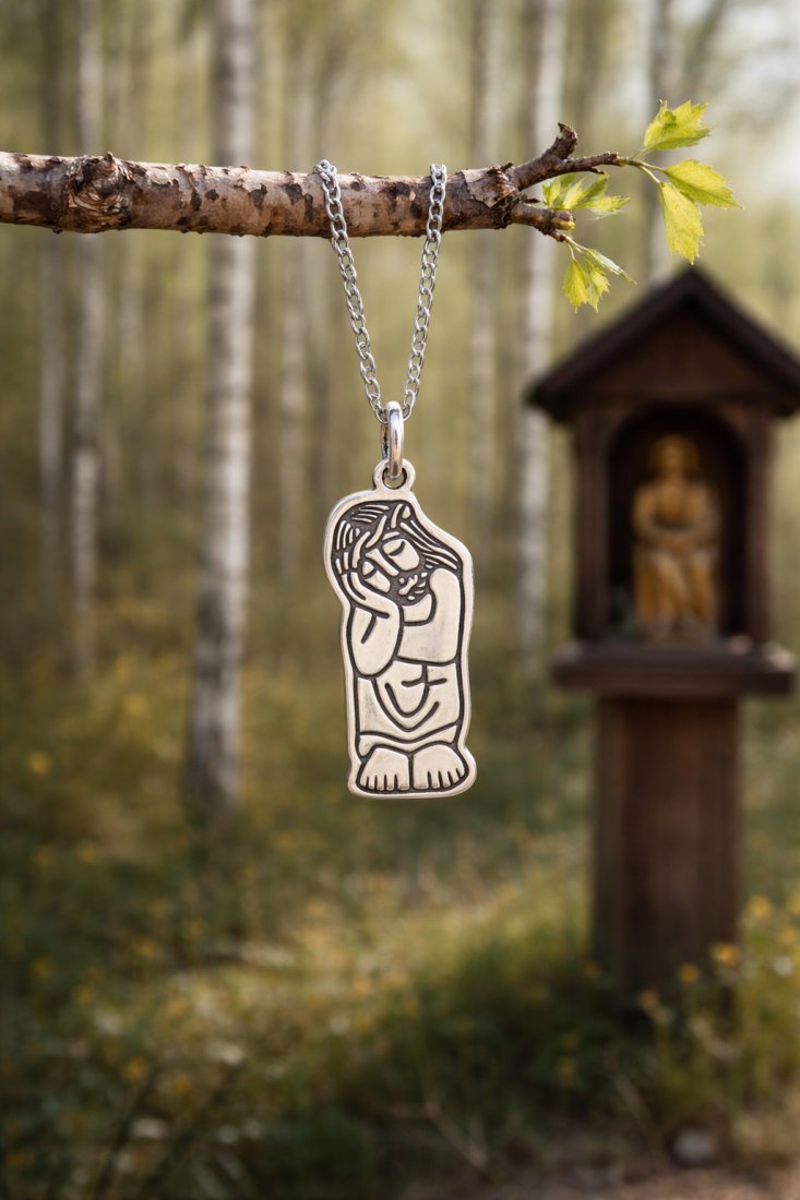 ORIGO to autorska linia srebrnych medalików, które zaprojektowałam jako alternatywę dla typowej oferty dewocjonaliów. Czerpię z polskiej sztuki ludowej, malarstwa, rzeźby i przydrożnych kapliczek – motywów głęboko zakorzenionych w krajobrazie i duchowości polskiej wsi.