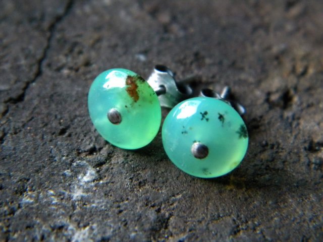 kolczyki.oksydowane srebro 925 i chryzopraz. średnica 8,5mm