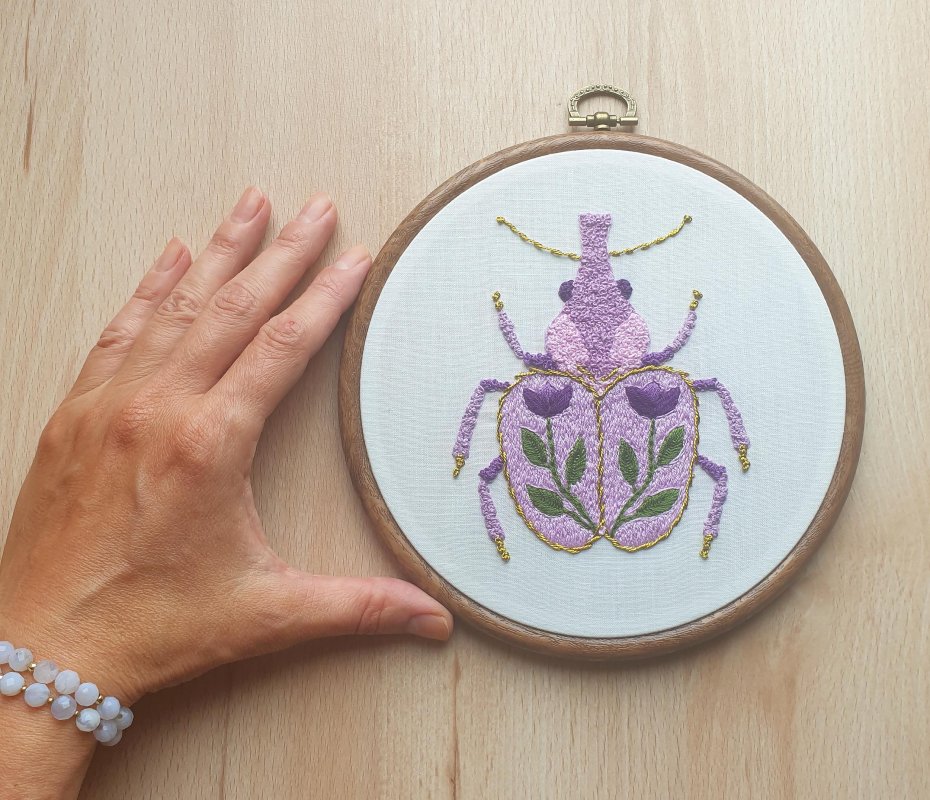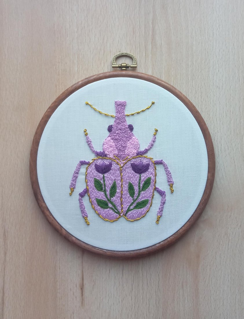 Tagi: #chrząszcz, #haft, #motyw kwiatowy, #ozdoba na ściane