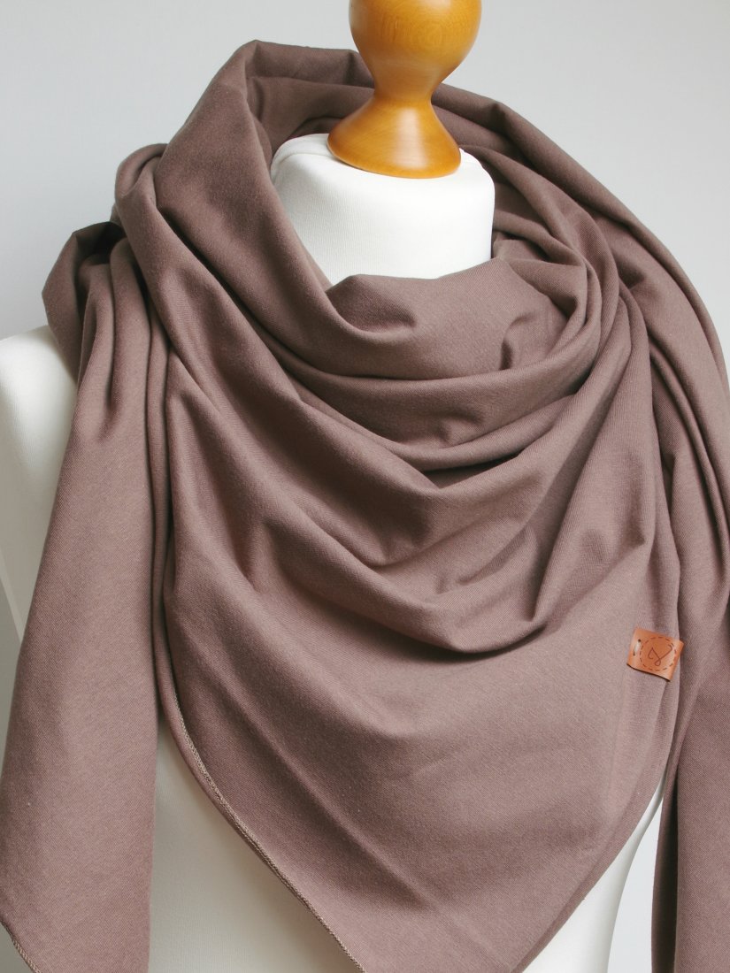 Duża chusta bawełniana na wiosnę/jesień. Uszyta z cienkiej dzianiny bawełnianej w kolorze kakao. Tkanina to certyfikowana bawełna, przyjazna dla skóry.