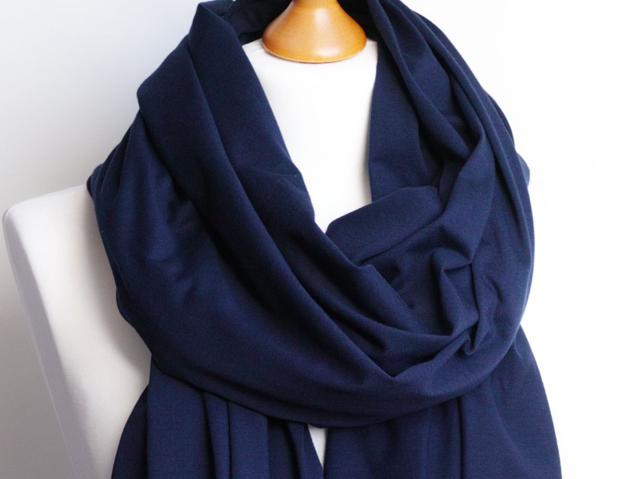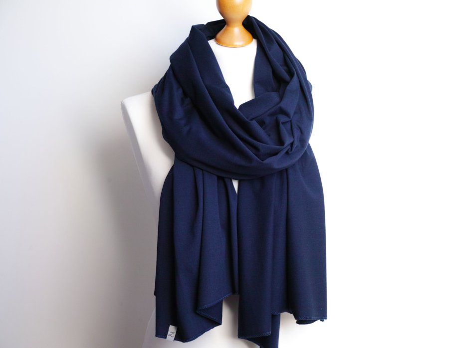 Duży szal, chusta bawełniana. Szal jest uszyty z cienkiej dzianiny bawełnianej w kolorze granatowym. Tkanina to certyfikowana bawełna, przyjazna dla skóry.