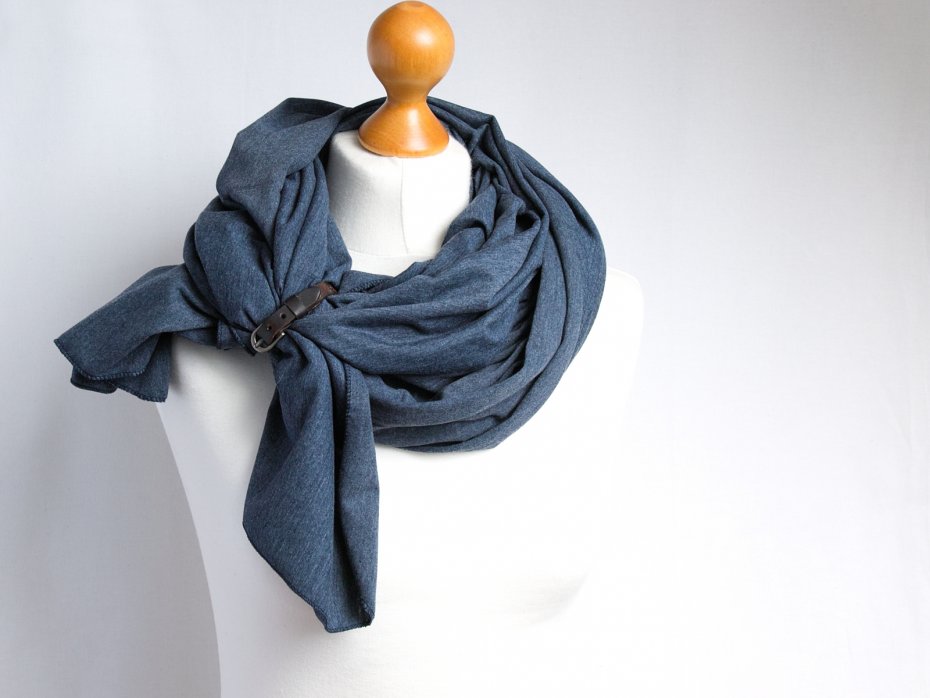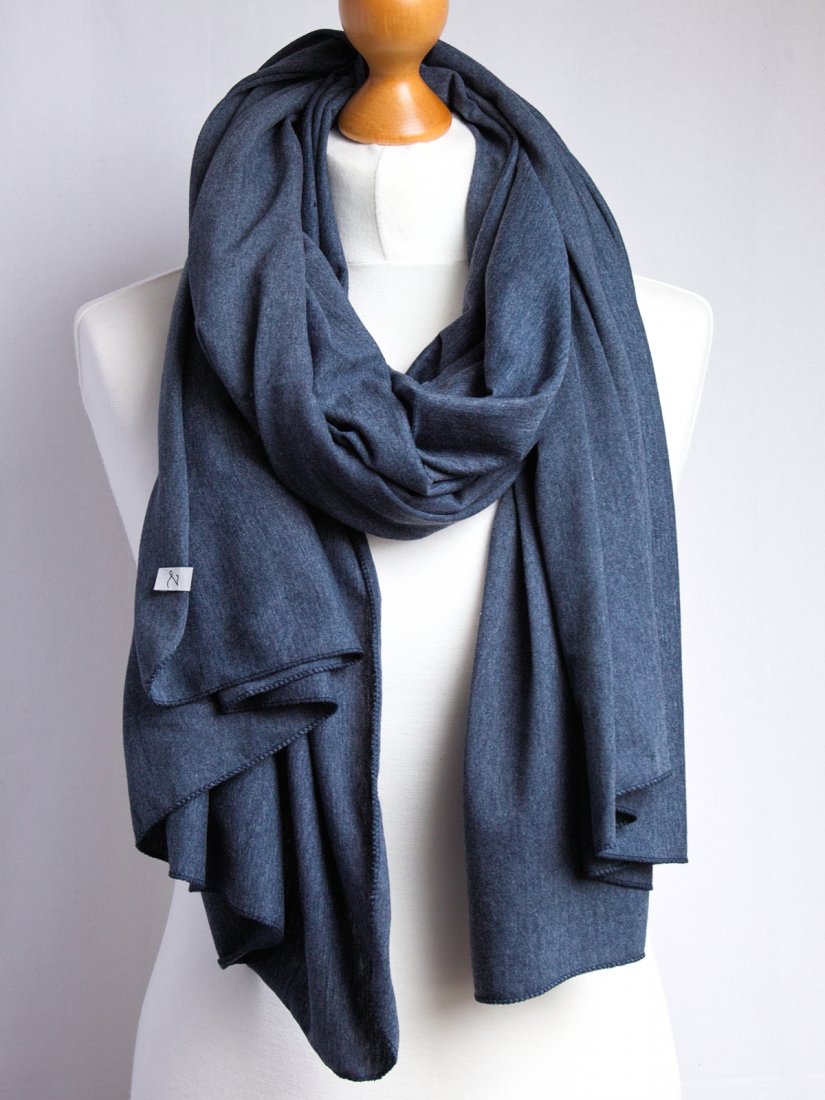 Duży szal, chusta bawełniana. Szal jest uszyty z cienkiej dzianiny w kolorze jeansowym. Tkanina to czysta certyfikowana bawełna, przyjazna dla skóry.