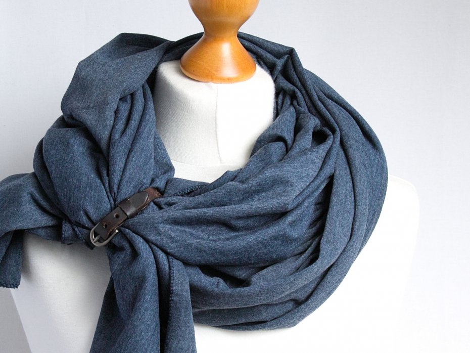 Dodatkiem do szala jest skórzana zapinka, która pozwoli ciekawie upiąć szal.