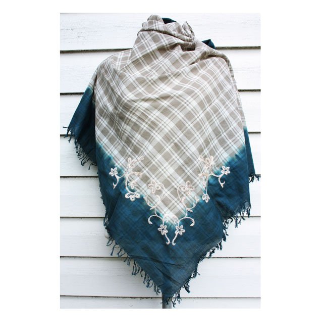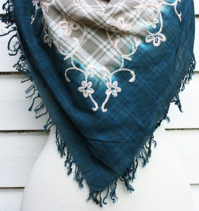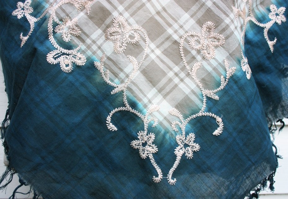 Piękna duża chusta z frędzlami . Haft kwiatki.