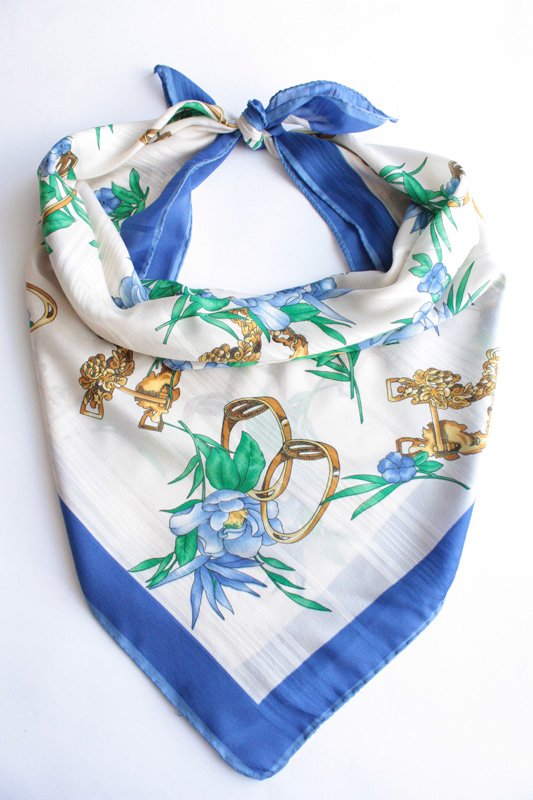 Wyjątkowa, zwiewna chusta w kwiaty i królewskie motywy a la HERMES. Materiał oceniam na poliester.