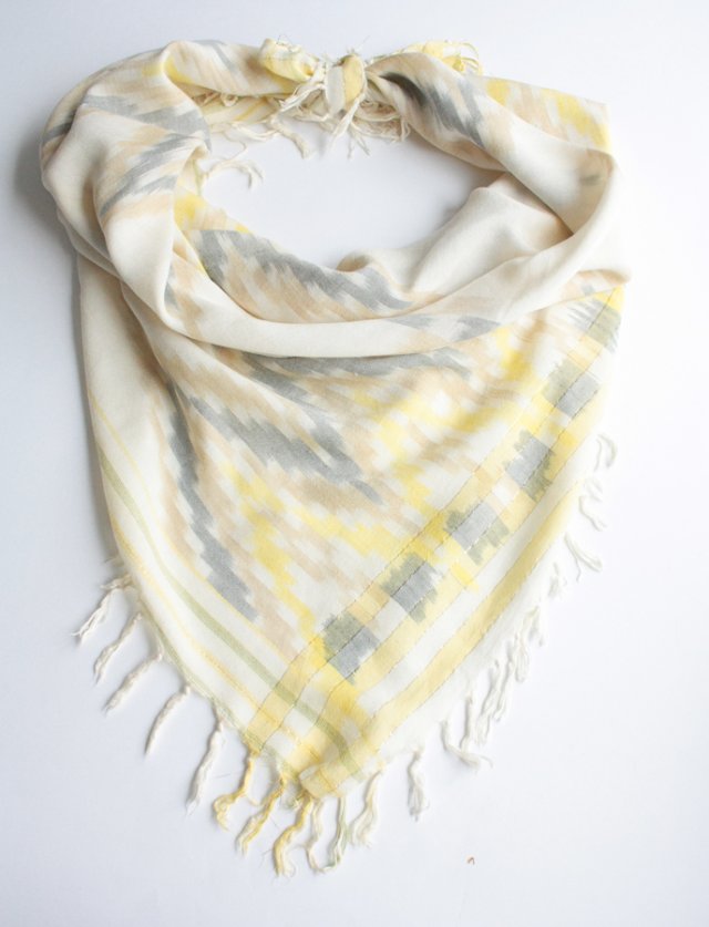 Miękka, miła w dotyku chusta przetykana subtelną, złotą nitką. Materiał oceniam na delikatną wiskozę.