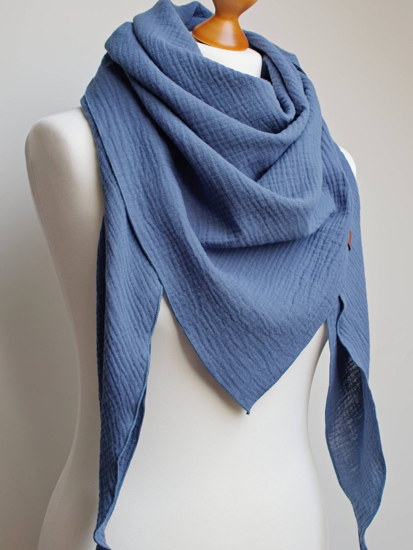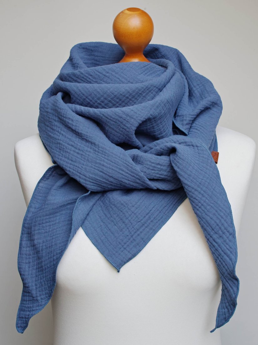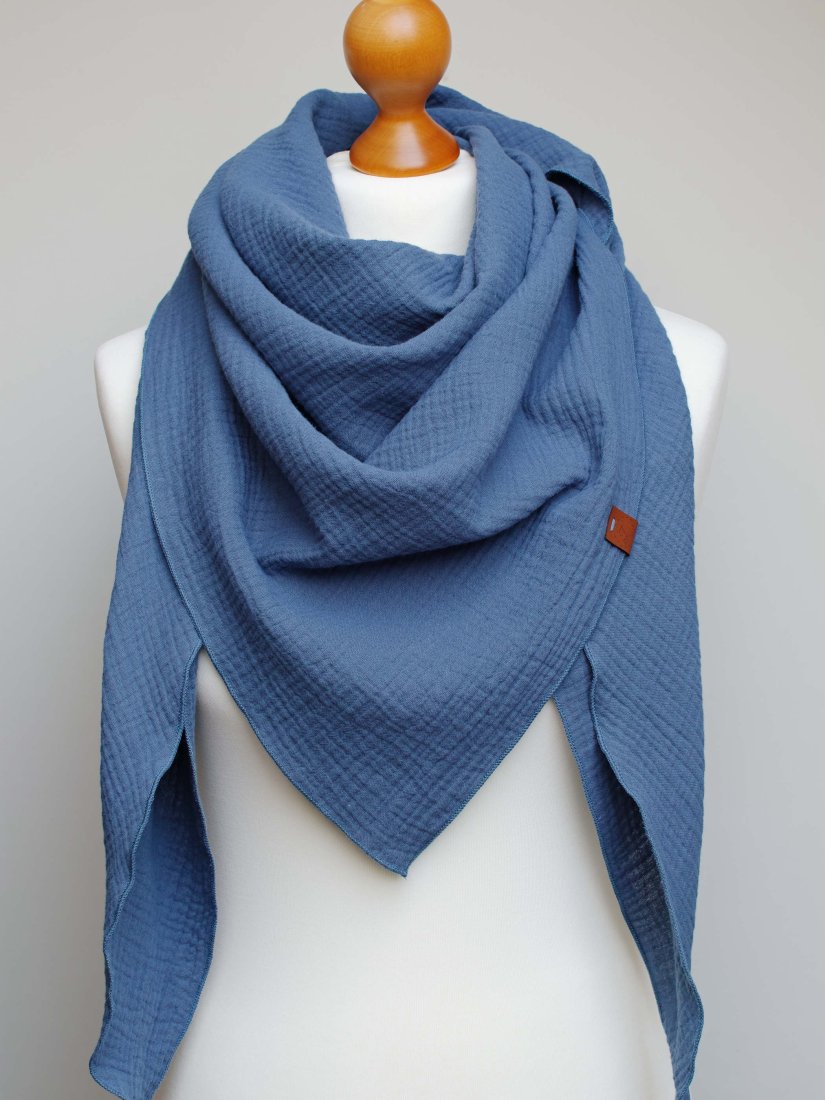 Duża chusta bawełniana na wiosnę/jesień. Uszyta z delikatnego muślinu. Tkanina jest bardzo miła i przyjemna w dotyku.