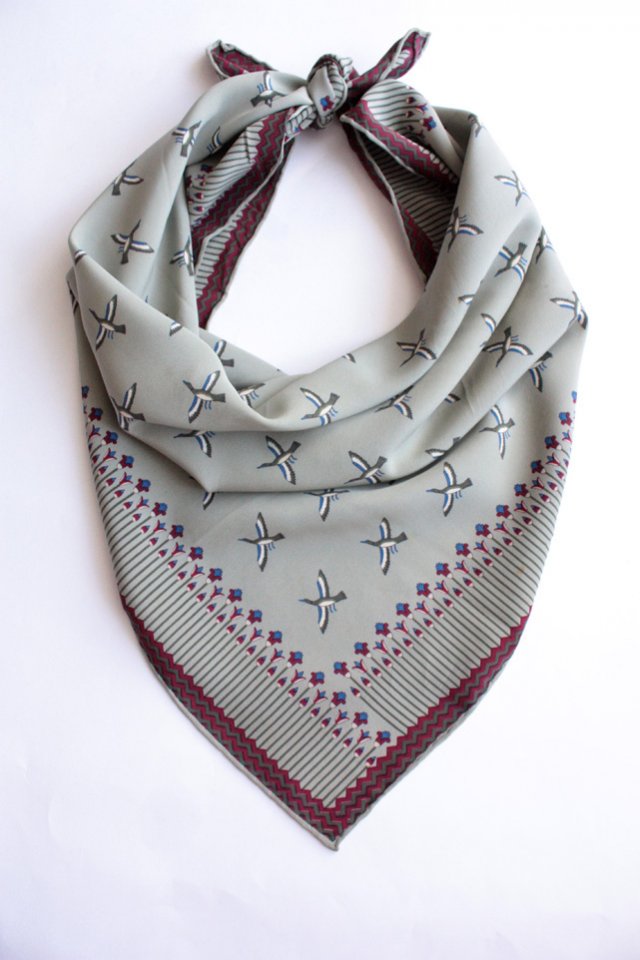 Cudna chusta we wzory w stylu retro. Materiał to prawdopodobnie jedwab naturalny lub syntetyczny.