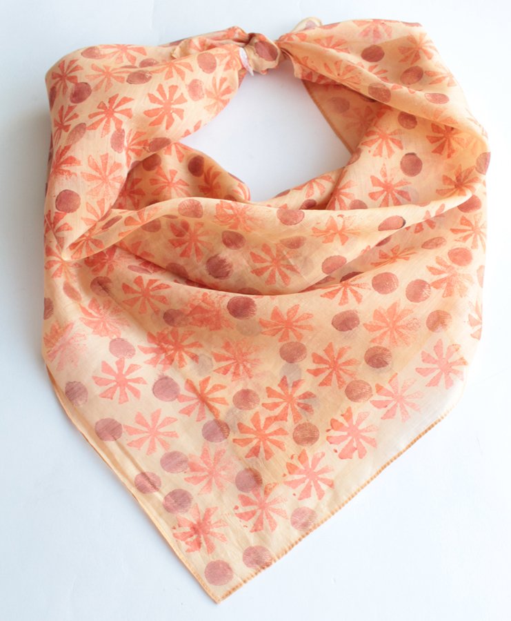 Wzorzysta chusta w zgaszonych odcieniach pomarańczu.