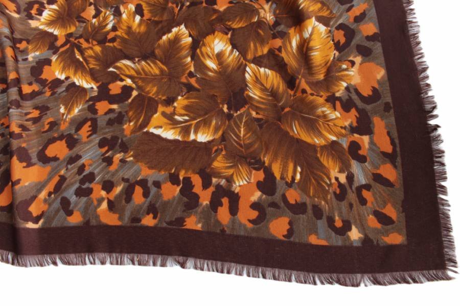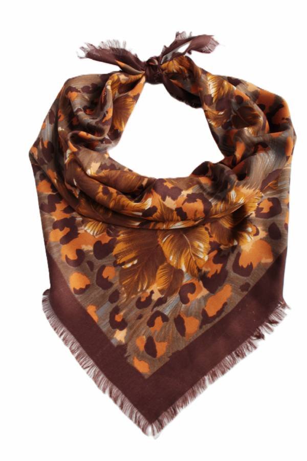 Chusta vintage w odcieniach brązu. Brak metki ze składem - nie jest to zwiewny materiał. Tkanina typu wiskoza.