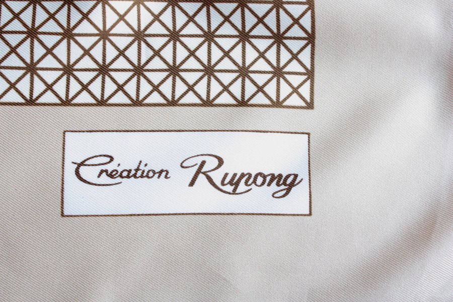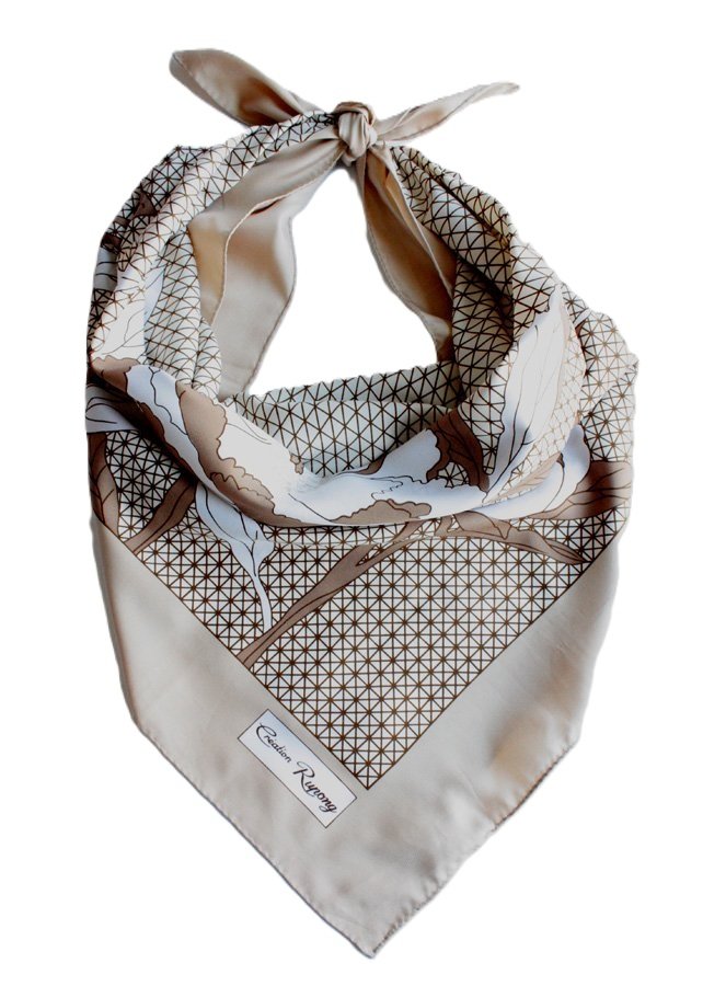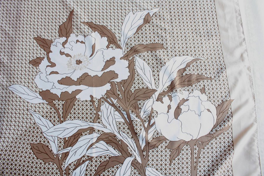 Piękna, beżowa chusta vintage w kwiaty. Ramka w kolorze beżowym.