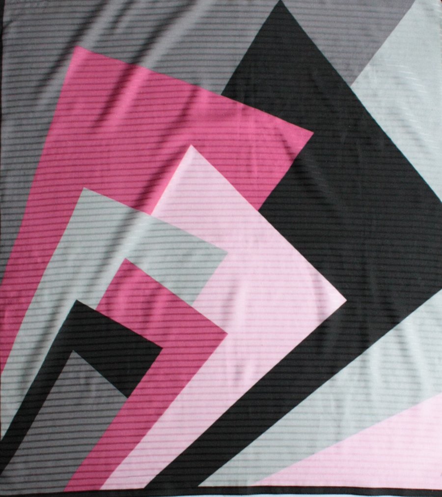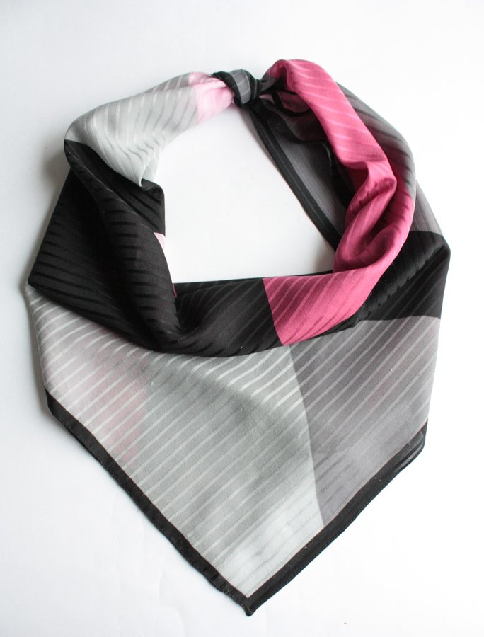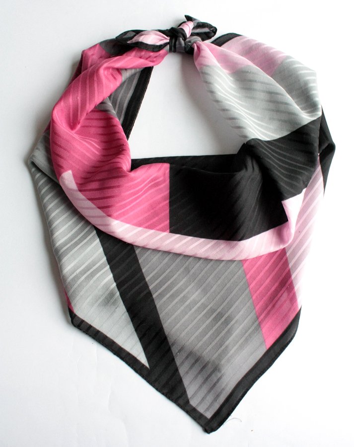 Chusta w geometryczne wzory, którą można nosić na kilka sposobów.