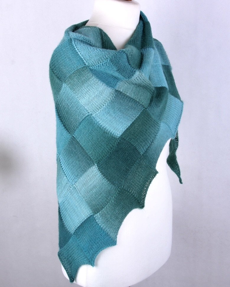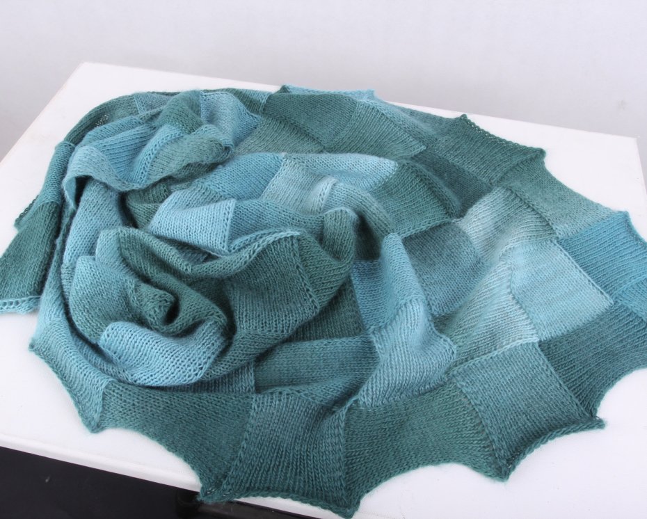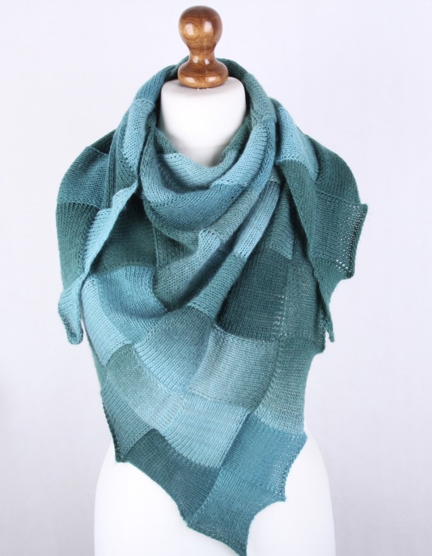 Mieszanka ta sprawia, że chusta jest niezwykle miękka, lekka i ciepła. Kombinacje przenikających się kolorów morskiej zieleni, turkusu i rozbielonego niebieskiego sprawia, że chusta jest niezwykle efektowna, zwracająca na siebie uwagę.