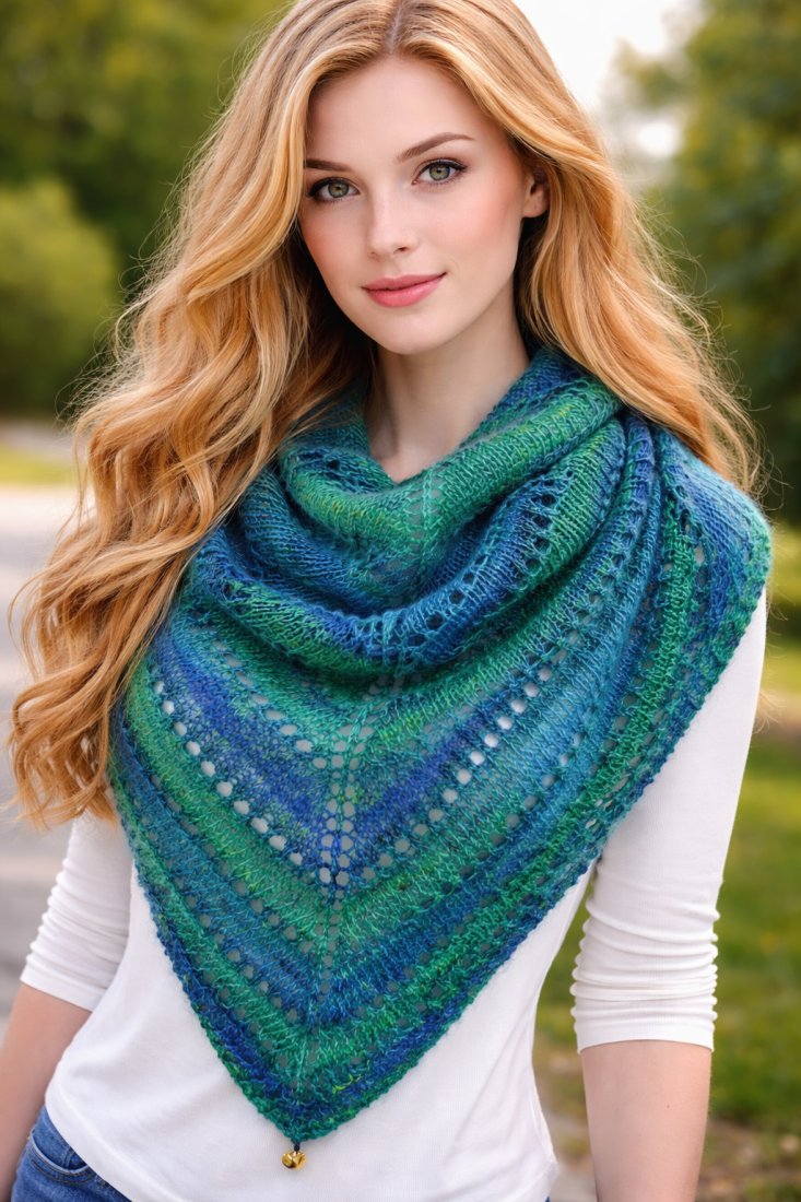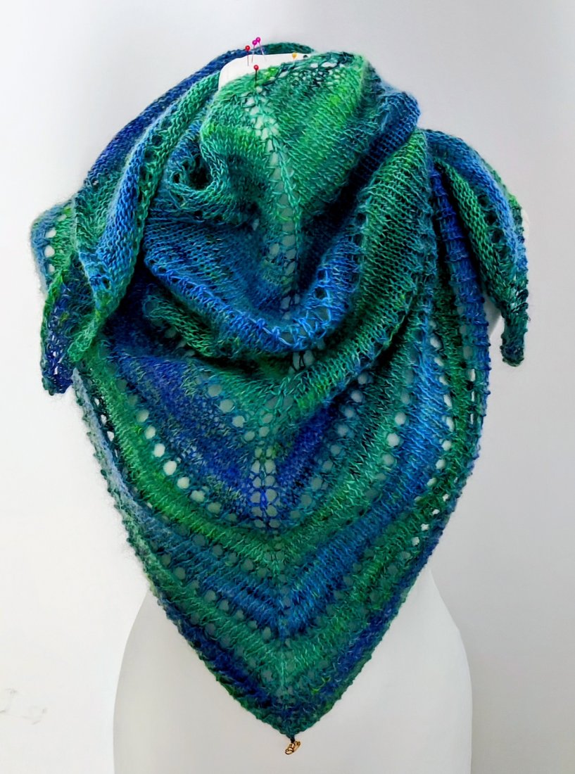 Ażurowa chusta ręcznie zrobiona na drutach.