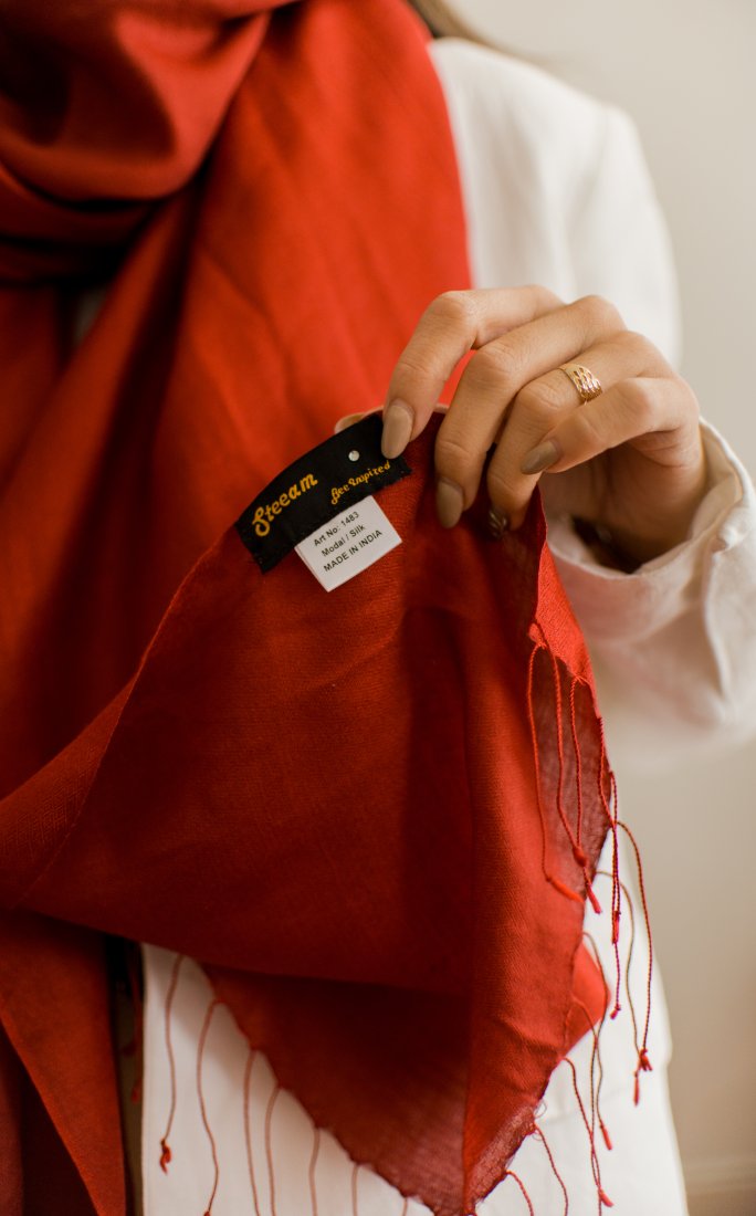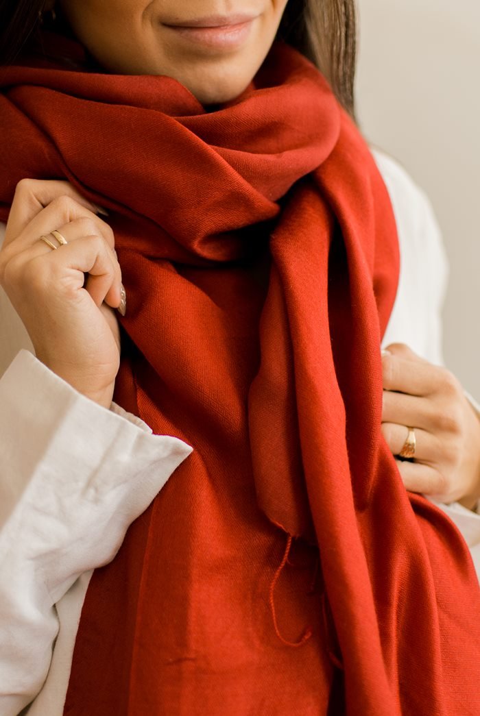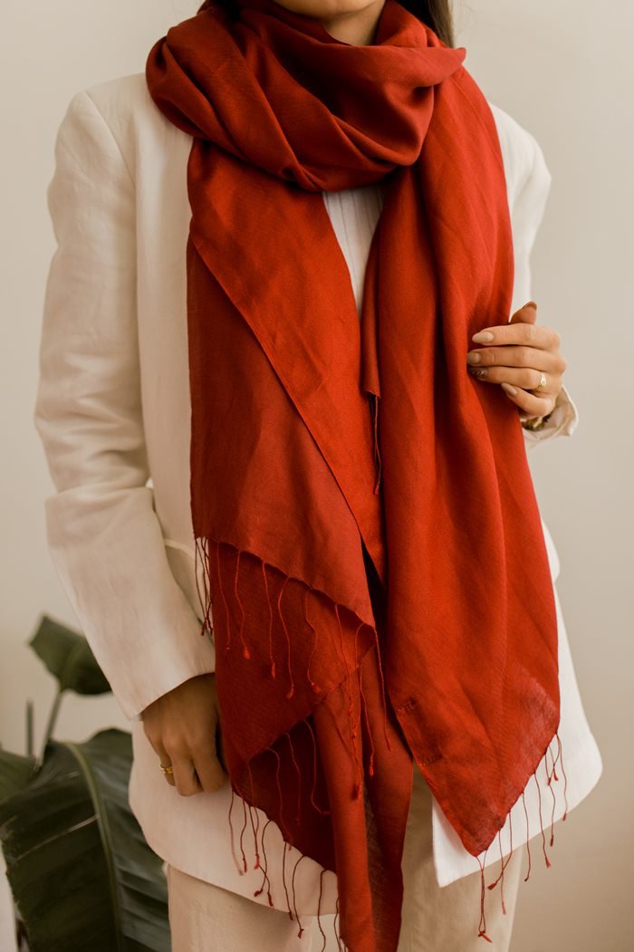 Bordowa chusta z modalu i jedwabiu. Kolor na żywo może nieco się różnić.