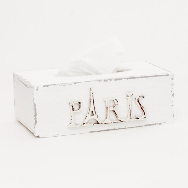 Pudełko na chusteczki wykonane z drewna sosnowego, ręcznie malowane, ozdobione motywem Paris. Od spodu pudełko zabezpieczone wysuwanym denkiem zapobiegającym wypadaniu zawartości podczas przenoszenia, umożliwiającym zapakowanie chusteczek.