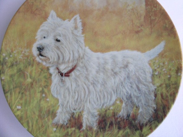 Kolekcjonerski talerz porcelanowy, sygnowany Royal Worcester. Seria z wizerunkami Westies autorstwa Johna Silvera. Wysoka jakość. 19 x 2 cm. Stan zachowania idealny.