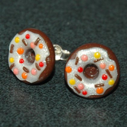 Kolczyki wykonane z masy termoutwardzalnej i wkrętów antyalergicznych. Wielkość oponek to ok. 13 mm.