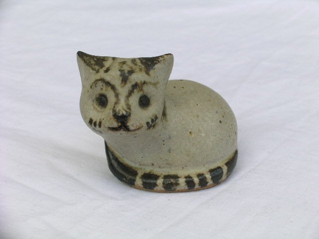 Ręcznie formowana figurka, malowana, z naturalnej masy (szamot?) - ciężka i matowo wykończona. Stemplowana, angielska. Niby niepozorna a urocza. 5 x 5 x 5 cm. Stan zachowania bardzo dobry.