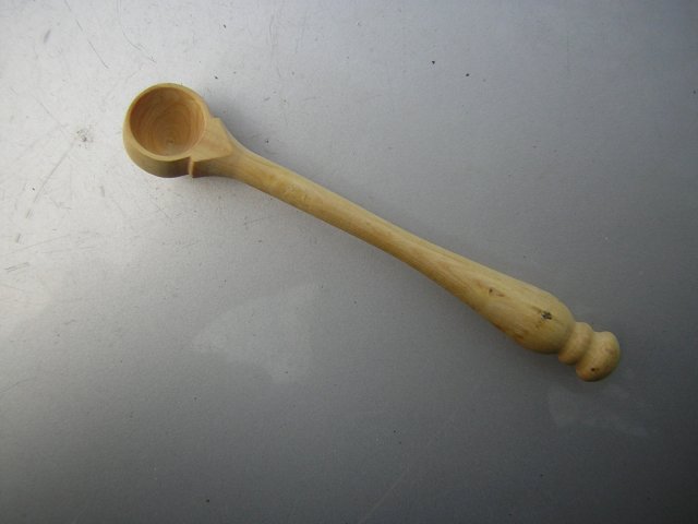 Drewniana łyżeczka do przypraw. Solidnie wykonana, poręczna. Wyjatkoeo głęboka i pojemna w swojej niewielkości ;) Jasne, lekkie drewno w wykończeniu satynowym. Nie całe 2 x około 1,5,x 11 cm Stan zachowania bardzo dobry minus. Drobne ślady użytkowania na rączce. Bez żadnych większych wad.