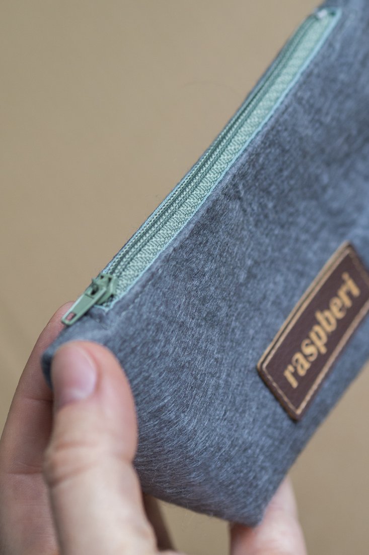 Kosmetyczka w rozmiarze MINI wykonana z szarego filcu.