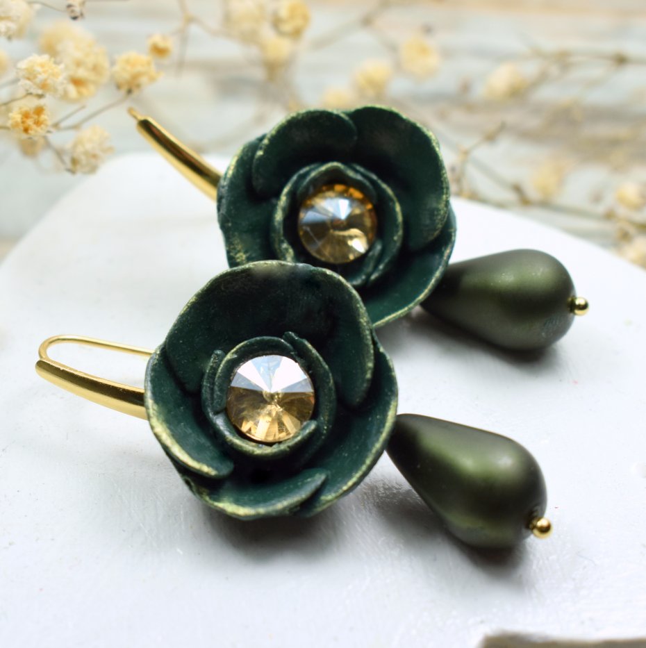 Tagi: #ciemnozielone kolczyki, #kolczyki kwiaty, #kolczyki na prezent, #kolczyki na święta